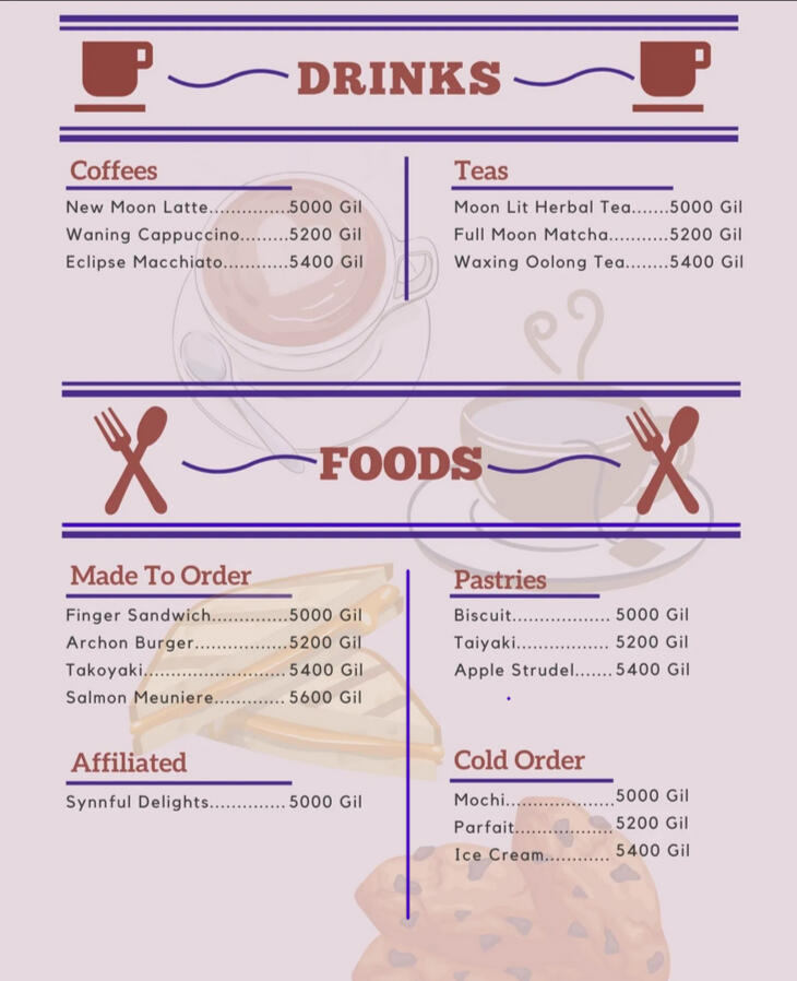 • No NSFW or ERP content is allowed in the public spaces of the cafe. This is especially true for the Mare Syncshell if you join in.*These rules are subject to be modified and changed by management as needed.OTHER INFORMATION